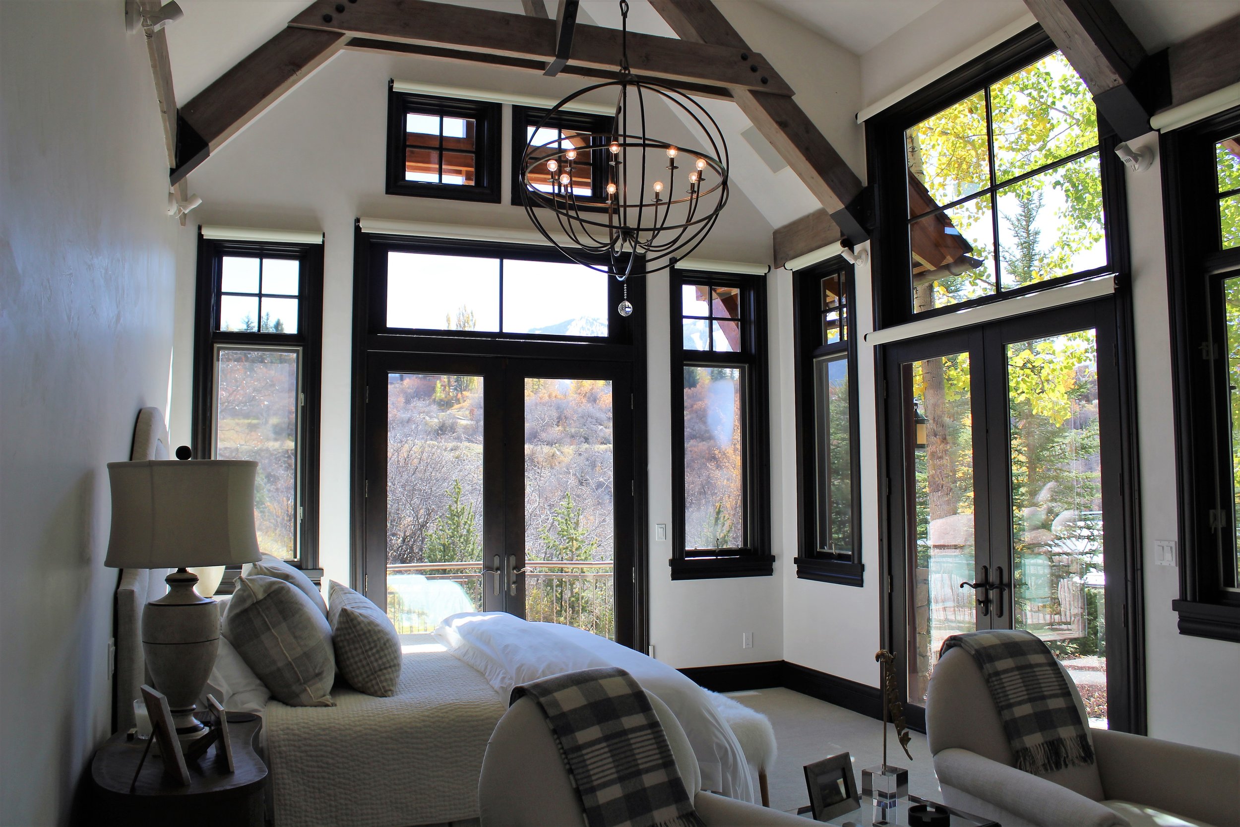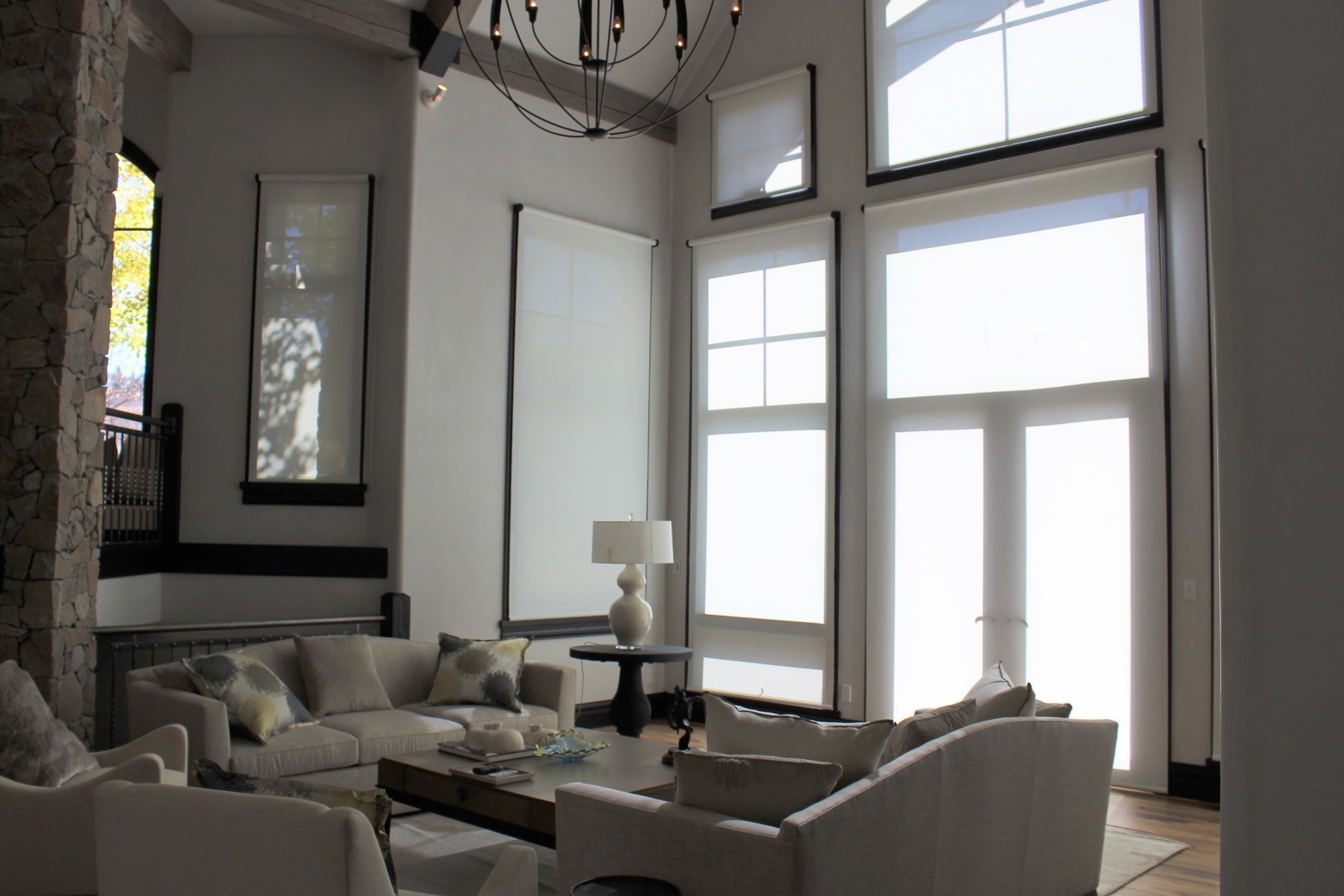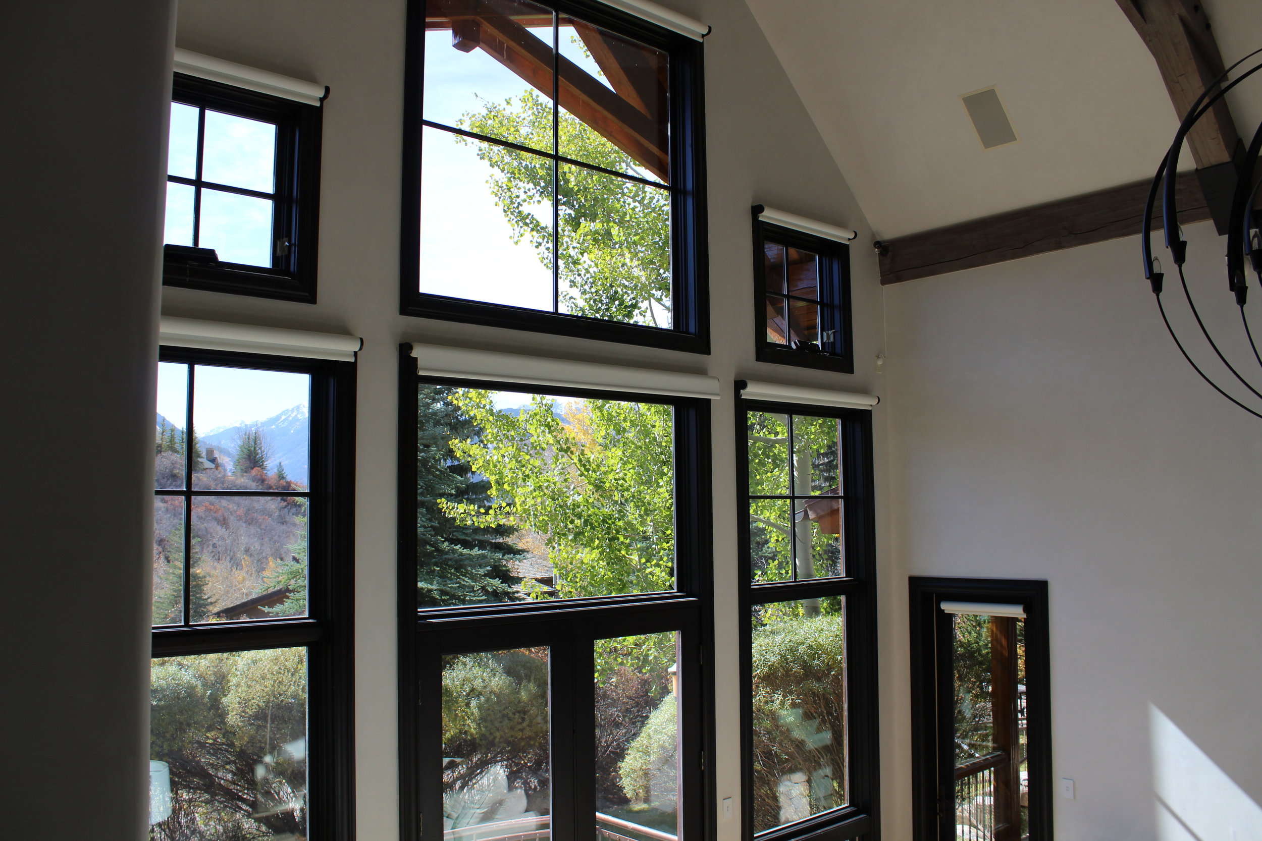 This Aspen home was remodeled to let the outside in. Big windows framed with bold trim draw the eye up and out over a beautiful garden and the Rocky Mountains beyond. J Geiger’s shading system blends seamlessly with the home’s interior, allowing the view to takes center stage. Black Delrin brackets are virtually invisible against the black window molding. And with no bulky fasteners or visible screws, the sleek shade tube can remain completely exposed, eliminating the need for valences or fascia.